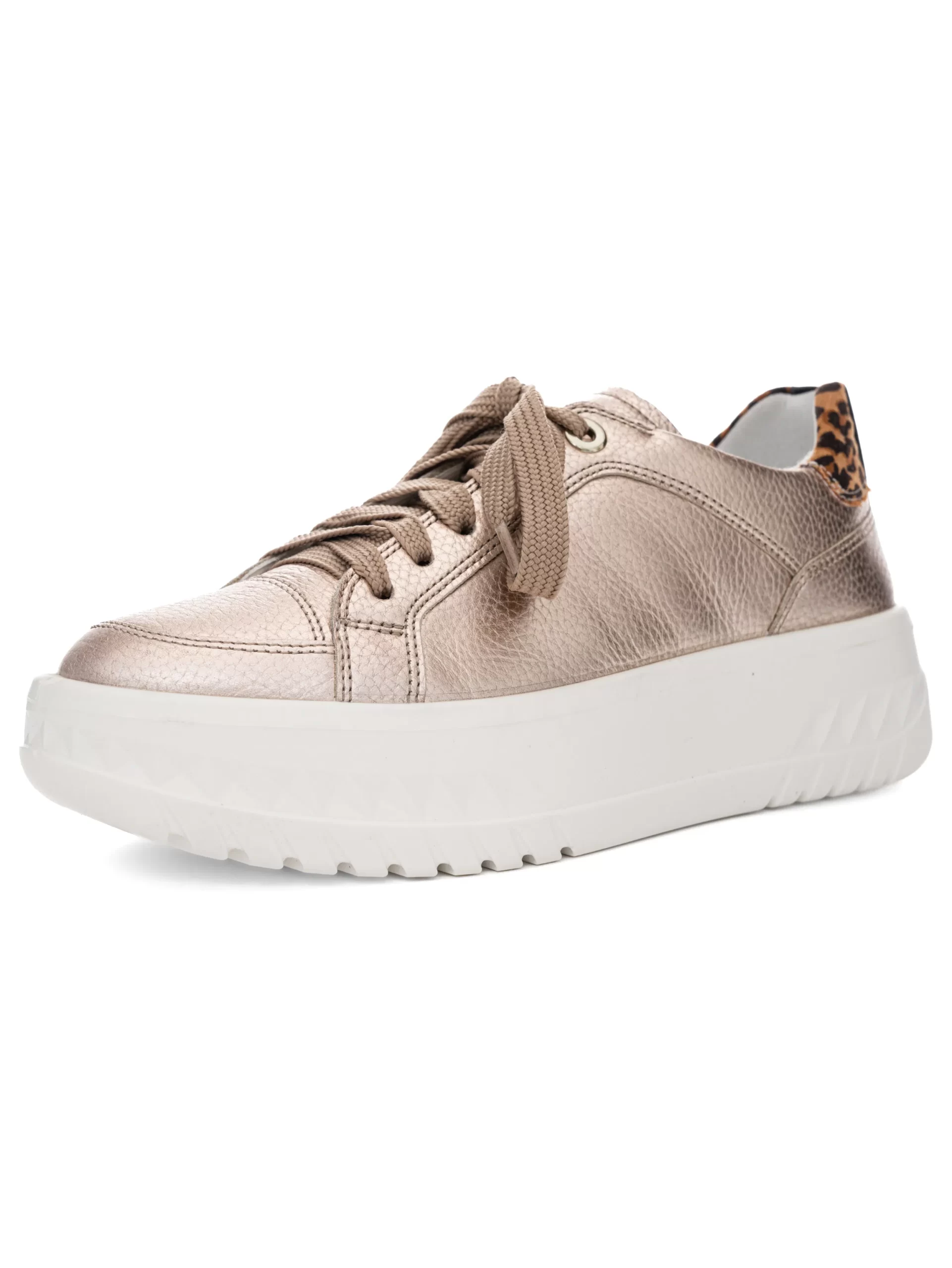 Monaco on tyylikäs ja supermukava kävelykenkä / tennari Aralta, joka sopii monenlaiseen menoon. Ulkopinta on pintanahkaa, kantaosassa ripaus leopardikuvioitua nahkaa. Kengän sisäosan materiaali on bambufrotee, pehmustettu ja kevyesti muotoiltu sisäpohja tuo käyttömukavuutta. Irrotettava pohjallinen. Nauhasäätö takaa hyvän istuvuuden ja vetoketju helpottaa pukemista. Kengässä on tilava H-lesti.